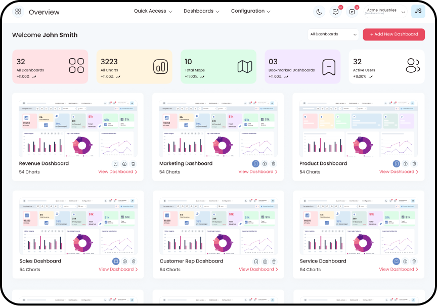 - Create Multiple Dashboards for stores and channels.