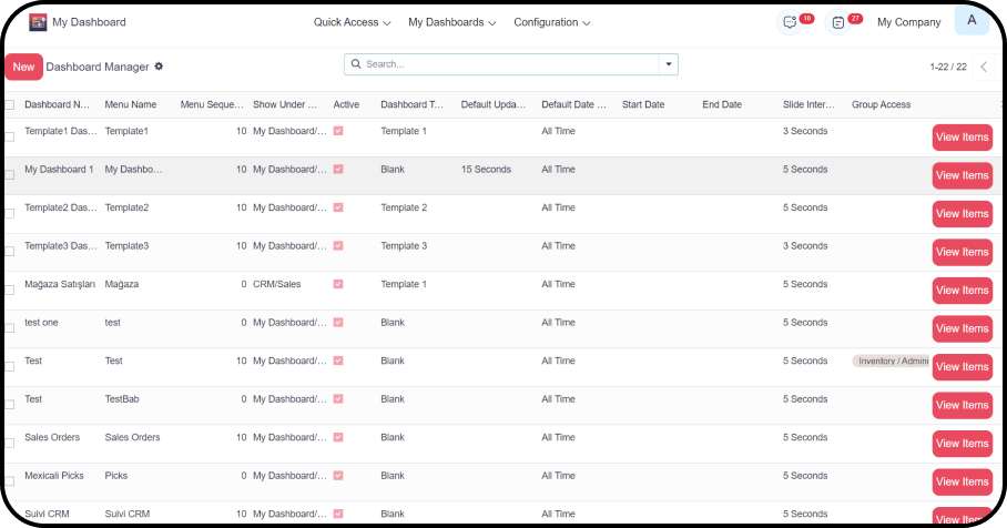 - Yes. After you create a dashboard, an action is generated with the name: Menu Name + “Action”.