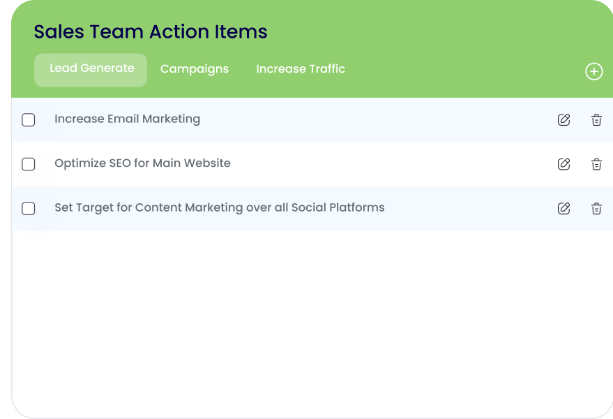Organize all tasks or actions that need to be completed in the form of a checklist, ensuring easy tracking of progress.