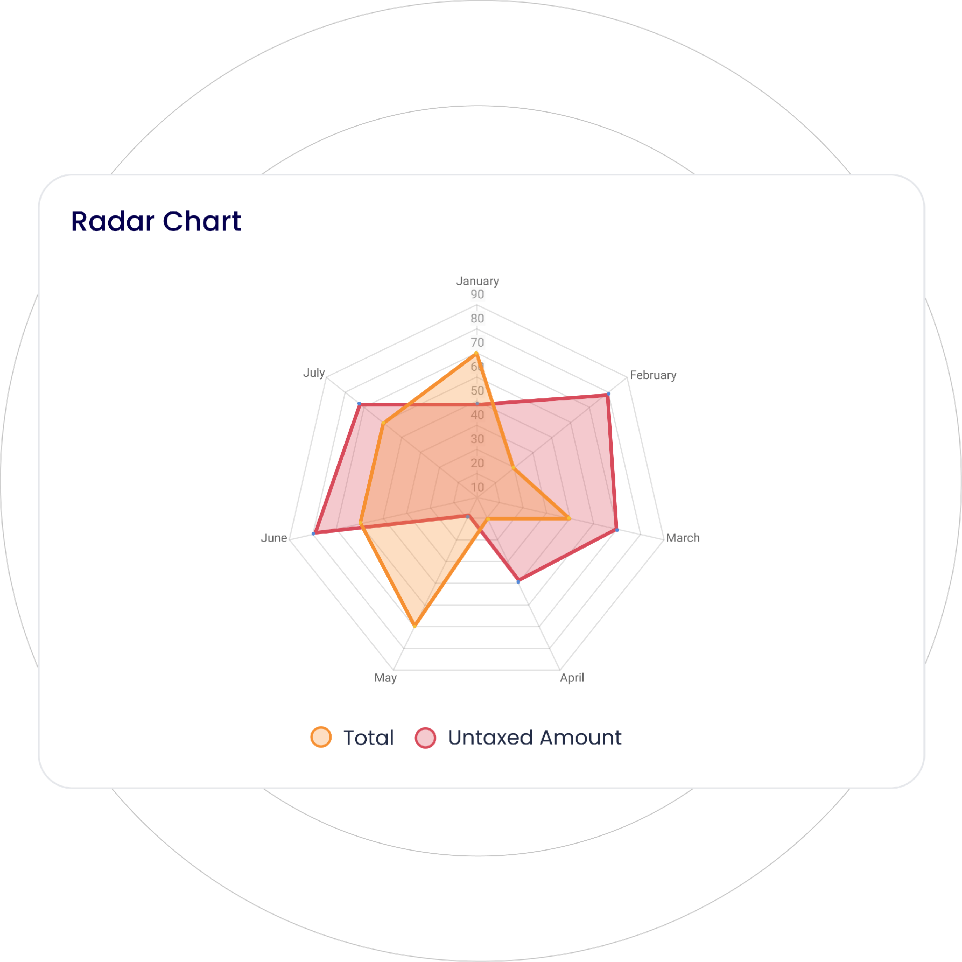 Represent multivariate data along concentric circles, where each circle represents a different variable or category.
