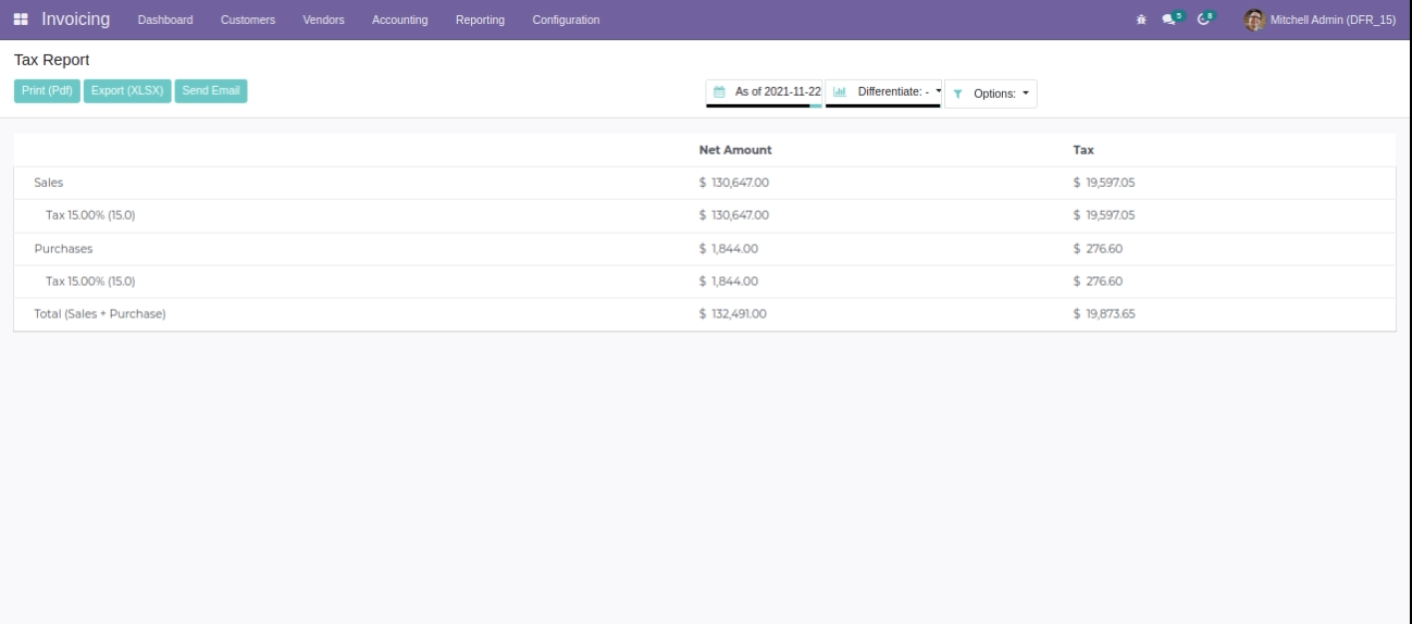 - The report can also be compared with the previous period or a custom period(defined by the user)
