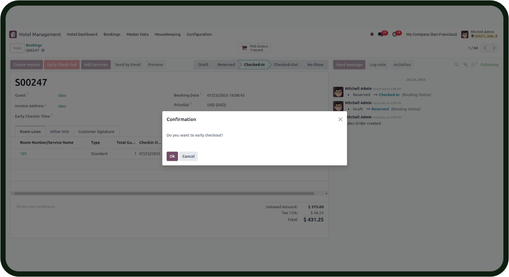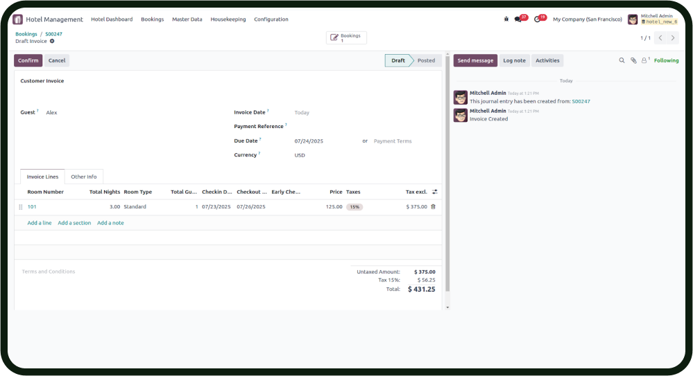 Odoo Hotel Management System