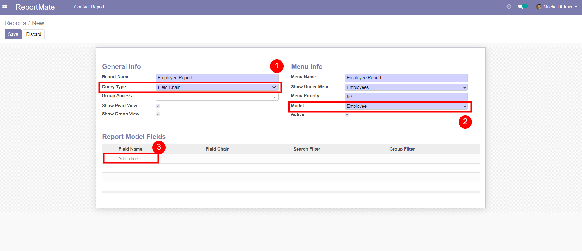 Create Custom View/Report based on Selected Model and by Selecting Fields/Relations on their own.